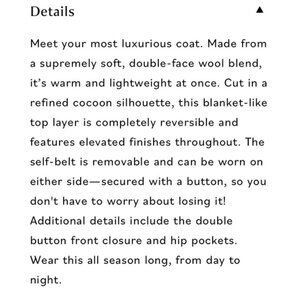 Universal Standard reversible, double faced luxe wool coat