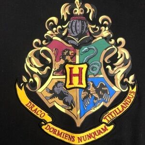 Universal Studios Wizarding World of Harry Potter Hogwarts Crest Black Sweatshirt Size L. Pullover, scoop crew neck, ribbed cuffs sweatshirt. Embroidered crest unisex fit. Excellent condition!