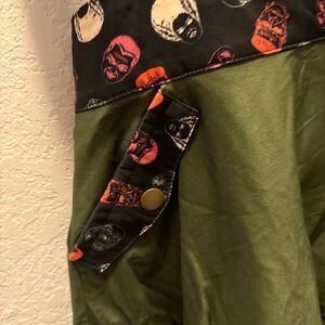 Unique Vintage dress with a green and black monster print. Features a playful design.