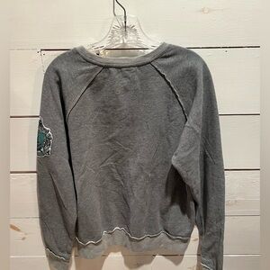 Cozy gray sweatshirt featuring Slytherin design. Perfect for fans. Excellent quality and EUC, smoke free home. Measurements are shown.