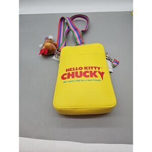 The Universal Studios Hello Kitty Chucky Crossbody Bag Purse is a limited edition collectible featuring characters from the Hello Kitty franchise. This multicolor purse includes a plush bear and is a perfect accessory for fans of Hello Kitty and Chucky. The bag is officially licensed by Universal Studios and is a must-have for any collector or fan of animation art and merchandise. The crossbody design makes it convenient for carrying while on the go, making it a great addition to any Hello Kitty fan's collection.