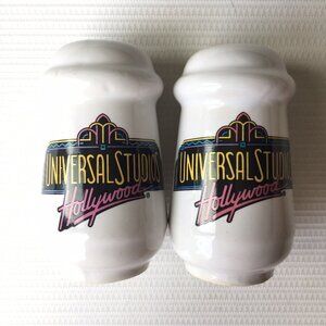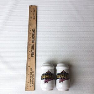 Vintage Universal Studios Hollywood Logo White Salt & Pepper Shakers Souvenir Collectible Theme Park