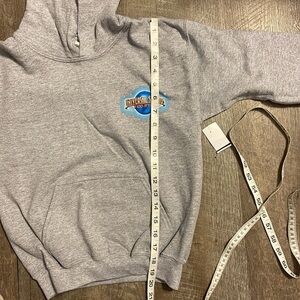 Universal Studios Kids Marvel Harry Potter Dr. Seuss Transformers Gray Hoodie size S. Has everything on it from universal studios. Despicable Me. Dinosaurs Jurassic Park. The Simpson’s. Spider-Man. New with tags! See pictures for measurements. Logo on front.