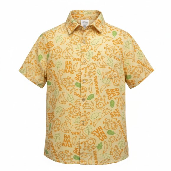 Universal Studios Minions Button Down Collared Yellow Print Shirt Boys Size M