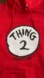 Has drawstring hood, kangaroo pocket, puffy Universal Studios lettering and vinyl (white is flat) and puff (raised) Thing 2 logo on chest