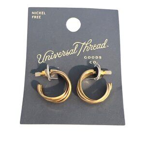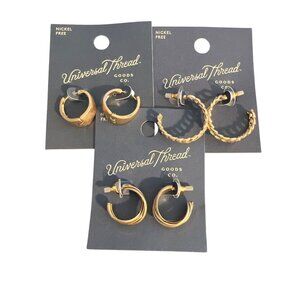 Universal Thread 3 Pair Gold Tone Earrings Pierced Hoops Nickel Free New on Card