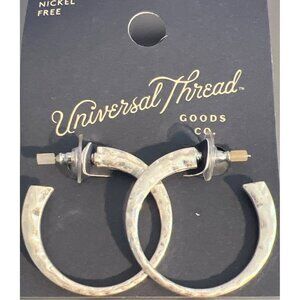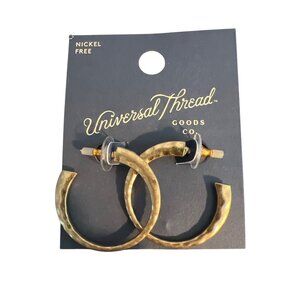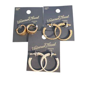 Universal Thread 3 Pair Hoop Earrings Gold Silver Tone Hinged Hammered New