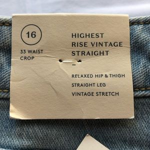 NWT. Size 16 Vintage stretch. Straight crop. Highest rise. Measurements laying flat waist 37in hips 44in rise 13.5in inseam 26.5in. Inventory C1-7.