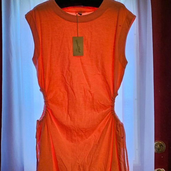 Universal Thread cover up with gathered cut-outs in the sides. Crew neck. Above the knee length.