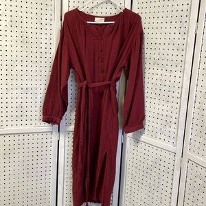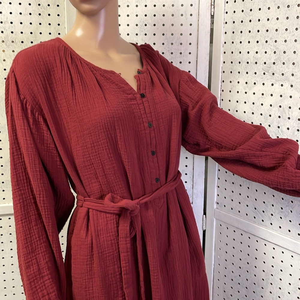 Maroon cotton long sleeved midi with 5 button front and belted waist ❤️❤️❤️❤️ chest 20 length 44