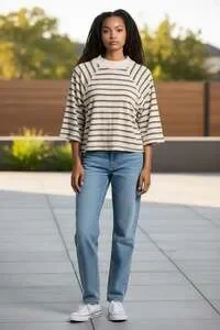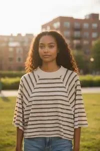 Universal Thread Women's Striped Mock Neck Cropped Raglan Top. This comfortable and stylish tee features a chic mock neck, three-quarter length raglan sleeves, and a cropped fit. The striped pattern in earthy tones of green, brown, and pink offers a versatile look for casual wear. Made from a lightweight, breathable fabric, it's perfect for layering or wearing on its own during transitional seasons. Excellent pre-owned condition with no visible flaws.
