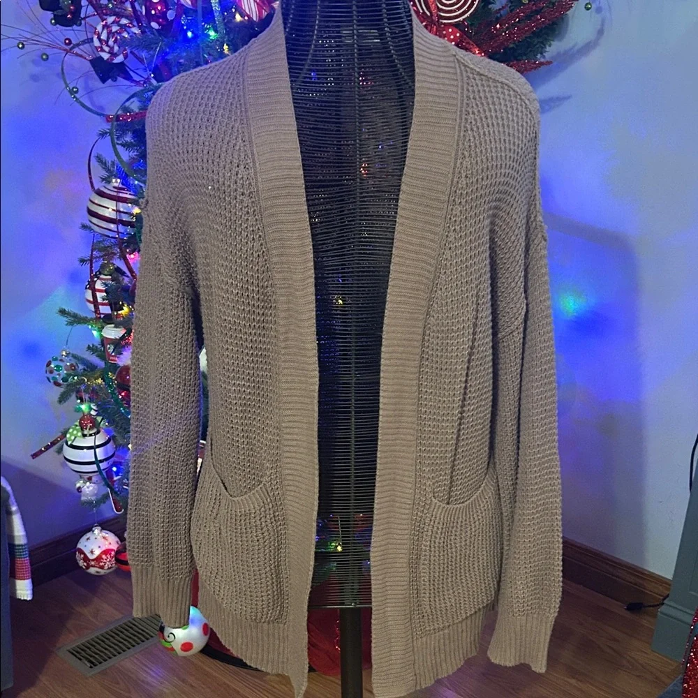 Stay cozy and stylish with this women's brown open-front sweater. Perfect for layering, this versatile piece is a must-have for your wardrobe.