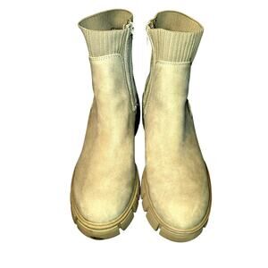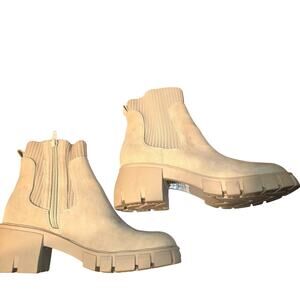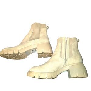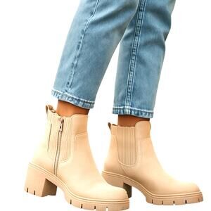Universal Thread 8 Cream Women's Chelsea Ankle Boots Block Heel Shoe