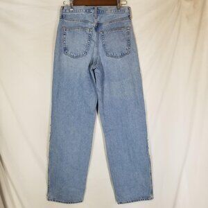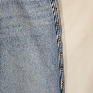 Channel vintage vibes with these super cool Universal Thread Women’s jeans in a 90s-inspired wide-leg fit. Size 0 and made from soft, faded light-wash denim, these jeans feature unique gold stud detailing down both sides, adding the perfect edge to your casual looks.
