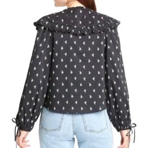 Balloon Long-Sleeve Embroidered Button-Down Shirt from Universal Thread™M will be a go-to pick for any occasion. Featuring an allover floral print for a lovely look, this button-down shirt features ruffle embroidered collar with eyelet detailing and balloon sleeves for a charming and flow shape. The top comes with tie-closure on the sleeves for on-trend charm, along with full button-down for ease of wear.