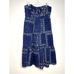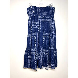 Universal Thread Bandana Sundress Strapless Blue Pockets Western Retro XL