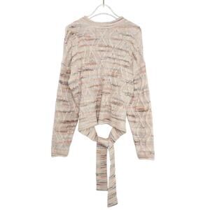 Universal Thread Beige Knit Multicolor Crewneck Sweater with Open Back XS
