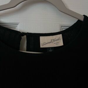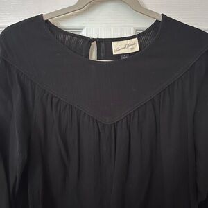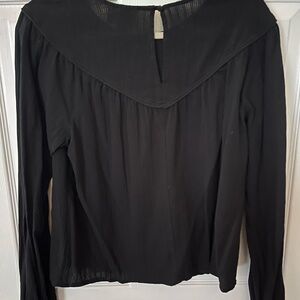 Chic black blouse with a round neckline. Long sleeves and a relaxed fit. Ideal for versatile styling.