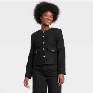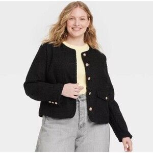 Universal Thread Black Boucle Gold Button-Front Jacket Tweed Size XXL
