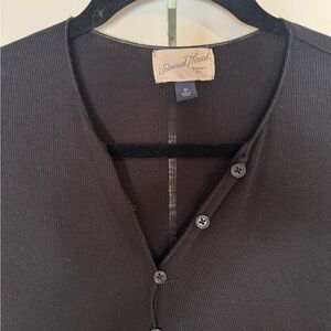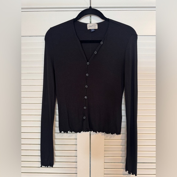 Universal Thread Black Ribbed Button Up Blouse