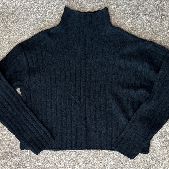Chic black turtleneck with ribbed texture. Ideal for cozy layering.