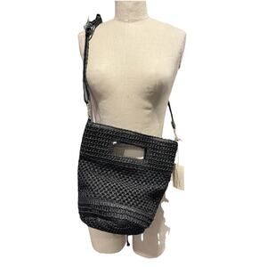 Universal Thread Black Straw Crossbody Bucket Bag with Braided Strap NEW