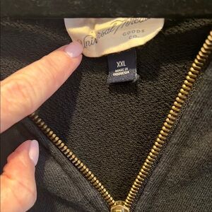 Sleek black jacket with a gold zipper. Comfortable and stylish.