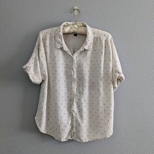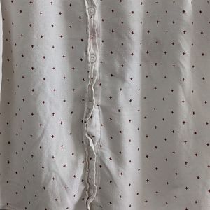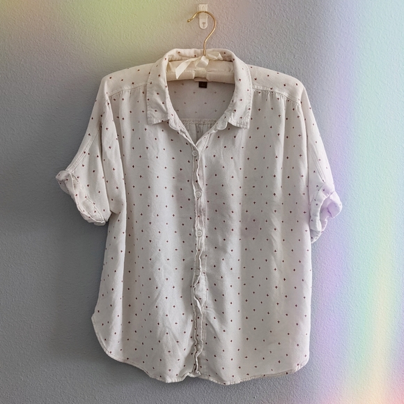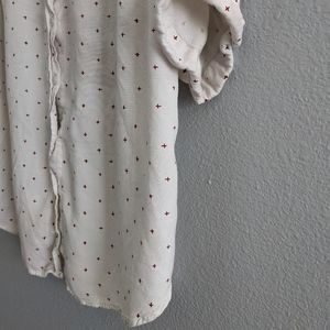 white & red blouse. has some wrinkles, but I've had success getting rid of them with an iron! size L, true to size.