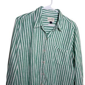Universal Thread Blouse Women's Large Green Striped Button Up Collared