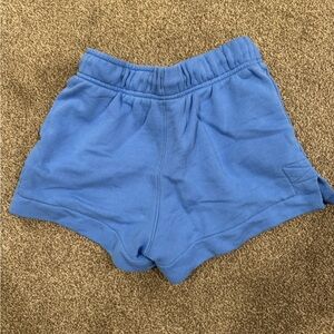 Soft blue shorts with drawstring waist. Ideal for workouts or casual outings.