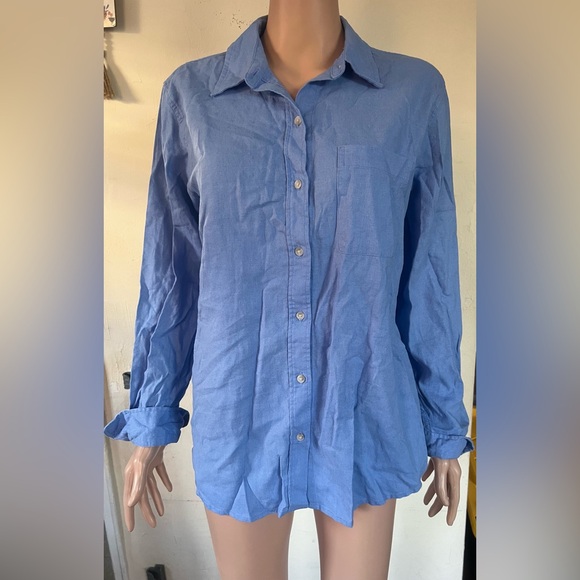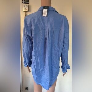 Stylish blue blouse. Button-up front. Classic collar. Long sleeves. #130