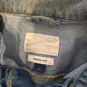 Classic blue denim jacket with button closure. Ideal for everyday style.