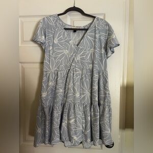 Chic mini dress with floral design. Short sleeves and V-neckline. Perfect for casual outings.