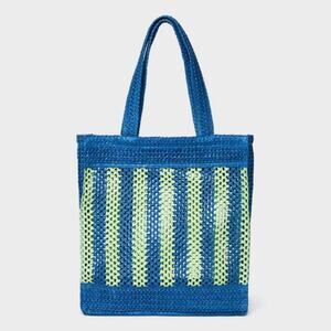 Universal Thread Blue Green Striped Straw Crochet Tote Handbag