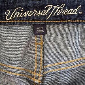 These blue jean shorts from Universal Thread feature a raw, unfinished hem for a casual, laid-back style. Made from classic denim fabric, they offer a medium to dark blue wash with a slightly faded look. Perfect for warm weather, these shorts provide a comfortable fit and a timeless appeal.