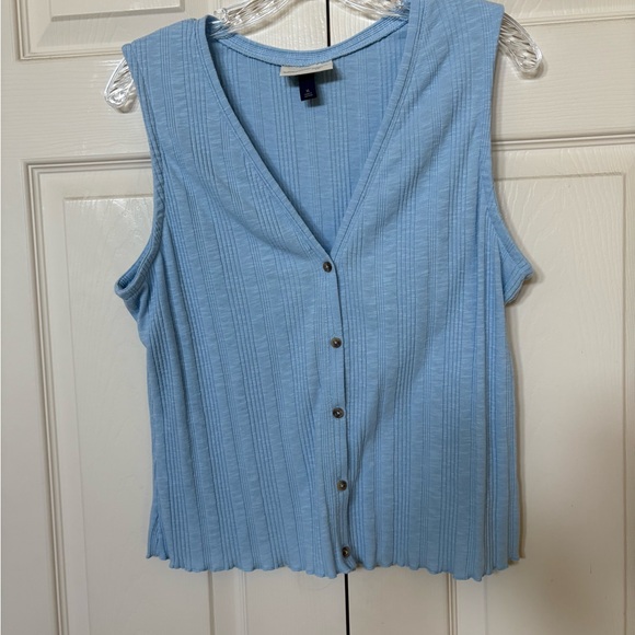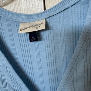 Stylish blue blouse by Universal Thread. Features ribbed texture and V-neck design. Buttons down the front