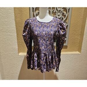 Universal Thread Boho Floral Puff Sleeve Peplum Top L Cottagecore Vintage Style