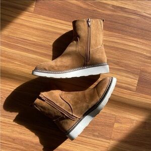 Universal Thread boots. Size: 6. Color: Tan. Faux tan suede outer with white sole. Inside zipper closure. Bootie length. The color contrast of the boots is doc cute and easy to wear with anything. Worn once. Good condition. No box. Smoke free home.