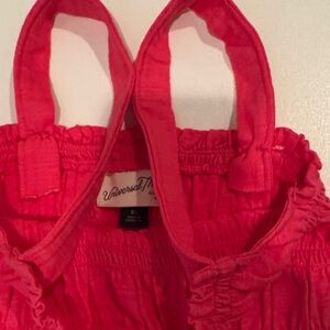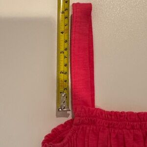 Women’s XS, but seems like a Girl’s Medium/Large. Straps have been altered a little shorter since they were wayyy long. :) See measuring tape picture for sizing. Stylish tank top with ruffle details. Bright pink color. Ideal for casual outings or paired with a skirt for a holiday. Like new and fresh.