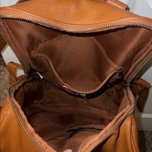 The Universal Thread brown backpack showcases a sleek, minimalist design with a high-quality leather finish. Its structured form ensures durability and style, making it perfect for everyday use. The adjustable shoulder straps provide comfort and versatility.