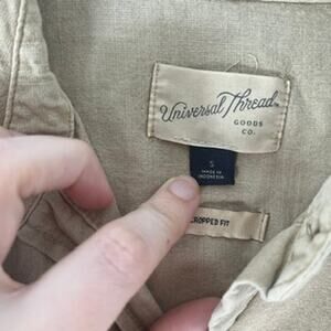 Universal Thread Brown Cropped Button Up Top Size Small. Excellent condition, like new. Tan/brown color. Full button up. Collared. Sleeves can be worn long or cuffed.