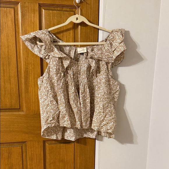 Universal Thread Brown Patterned Ruffle Blouse