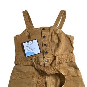 Keywords: brown jumpsuit, sleeveless jumpsuit, belted jumpsuit, button front jumpsuit, casual jumpsuit, womens jumpsuit, utility jumpsuit, workwear jumpsuit, universal thread, cropped jumpsuit, cotton jumpsuit