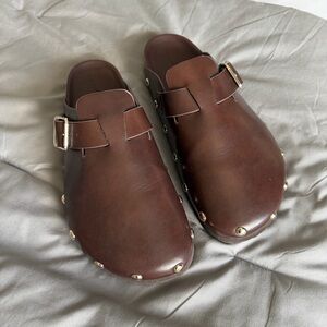 Dark brown studded clogs - worn 1-2 times only, in like new condition