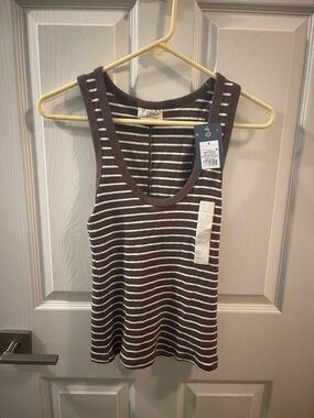 Universal Thread Brown & White Striped Ribbed Tank