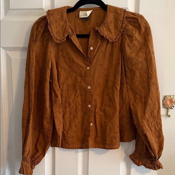 Universal Thread Burnt Orange Button-Front Embroidered Blouse