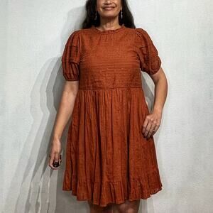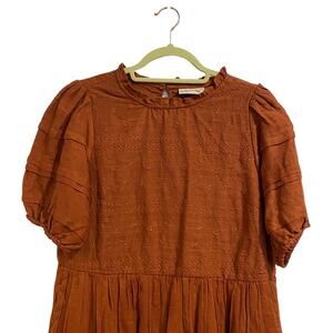 Universal Thread Burnt Orange Puff Sleeve Embroidered Dress Sz S NWT