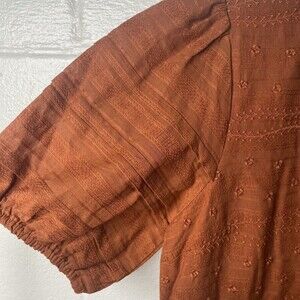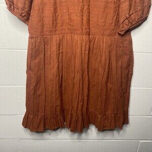 Universal Thread Burnt Orange Puff Sleeve Ruffle Dress Embroidered Peasant Medium Puff sleeve Pockets Lined Cotton