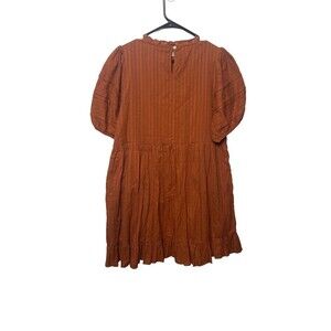Universal Thread Burnt Orange Puff Sleeve Ruffle Dress Embroider Peasant Medium
