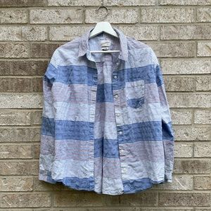 Really cute and casual red white and blue striped long sleeve button down. Size large. Like new condition.